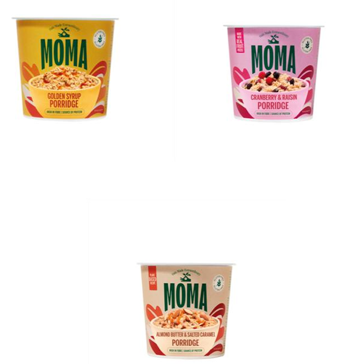 - Vöruheiti: Moma Golden Syrup Porridge Pot, Moma Cranberry og Raisins Porridge Pot og Moma Almond Butter & Salted Caramel Porridge Pot